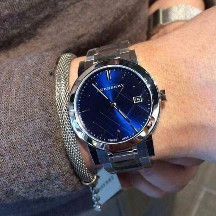 The Burberry The City BU9031 is crafted to reflect the brand’s commitment to precision, quality, and understated luxury. The vibrant blue dial is accented by subtle Burberry check patterns, offering a sophisticated contrast against the polished silver case.