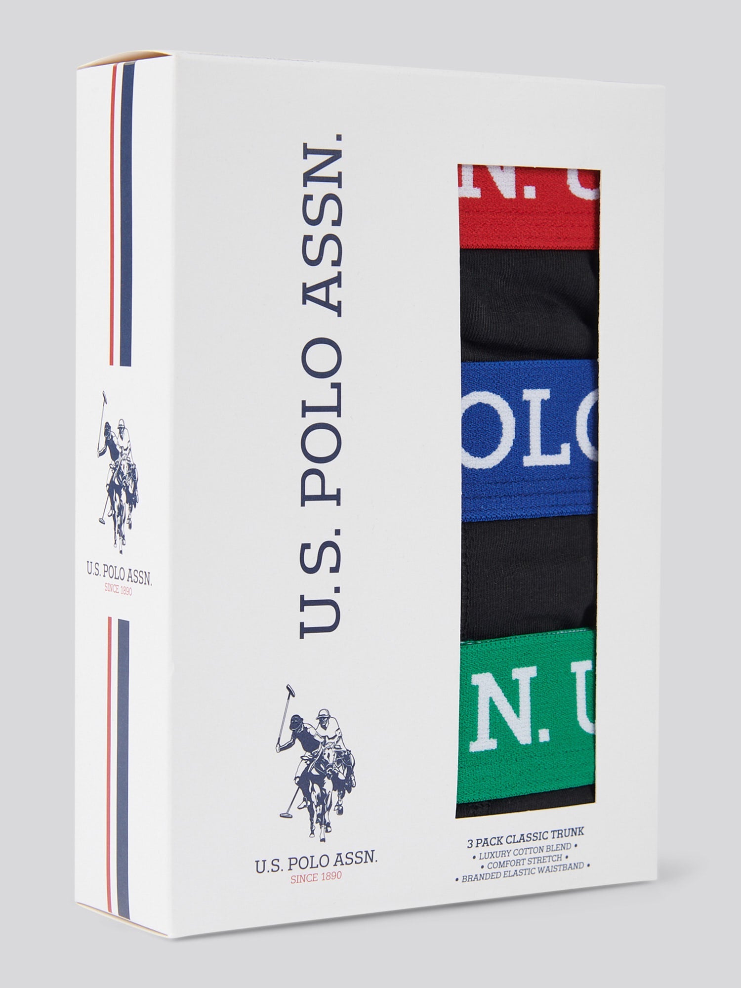 A versatile addition to your essentials, the U.S. Polo Assn. Mens 3 Pack Contrast Waistband Boxer Shorts combines comfort with style. Made from a soft, stretch cotton blend, each pair features a bold, contrast waistband with the iconic USPA branding.