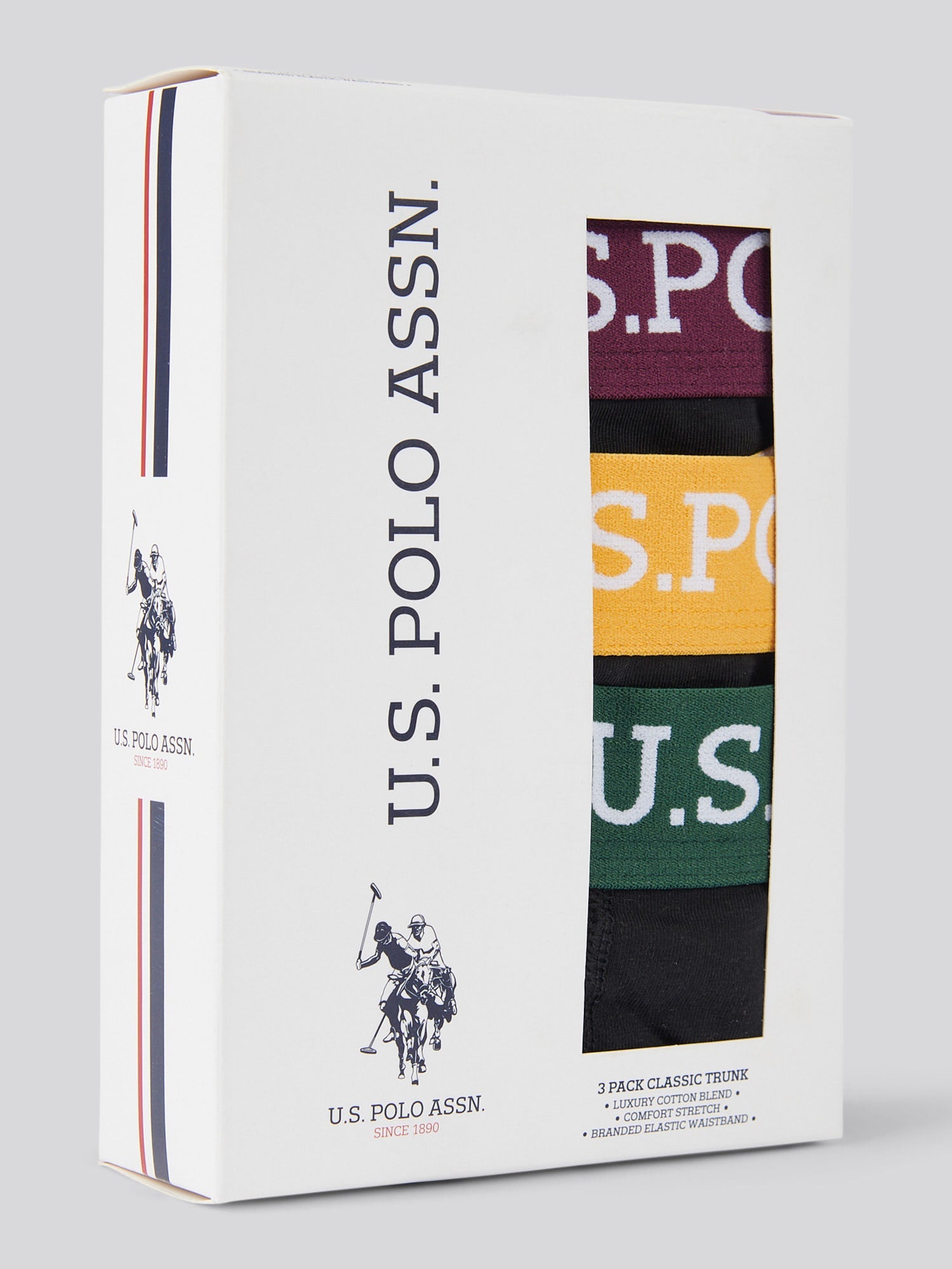 A versatile addition to your essentials, the U.S. Polo Assn. Mens 3 Pack Contrast Waistband Boxer Shorts combines comfort with style. Made from a soft, stretch cotton blend, each pair features a bold, contrast waistband with the iconic USPA branding.