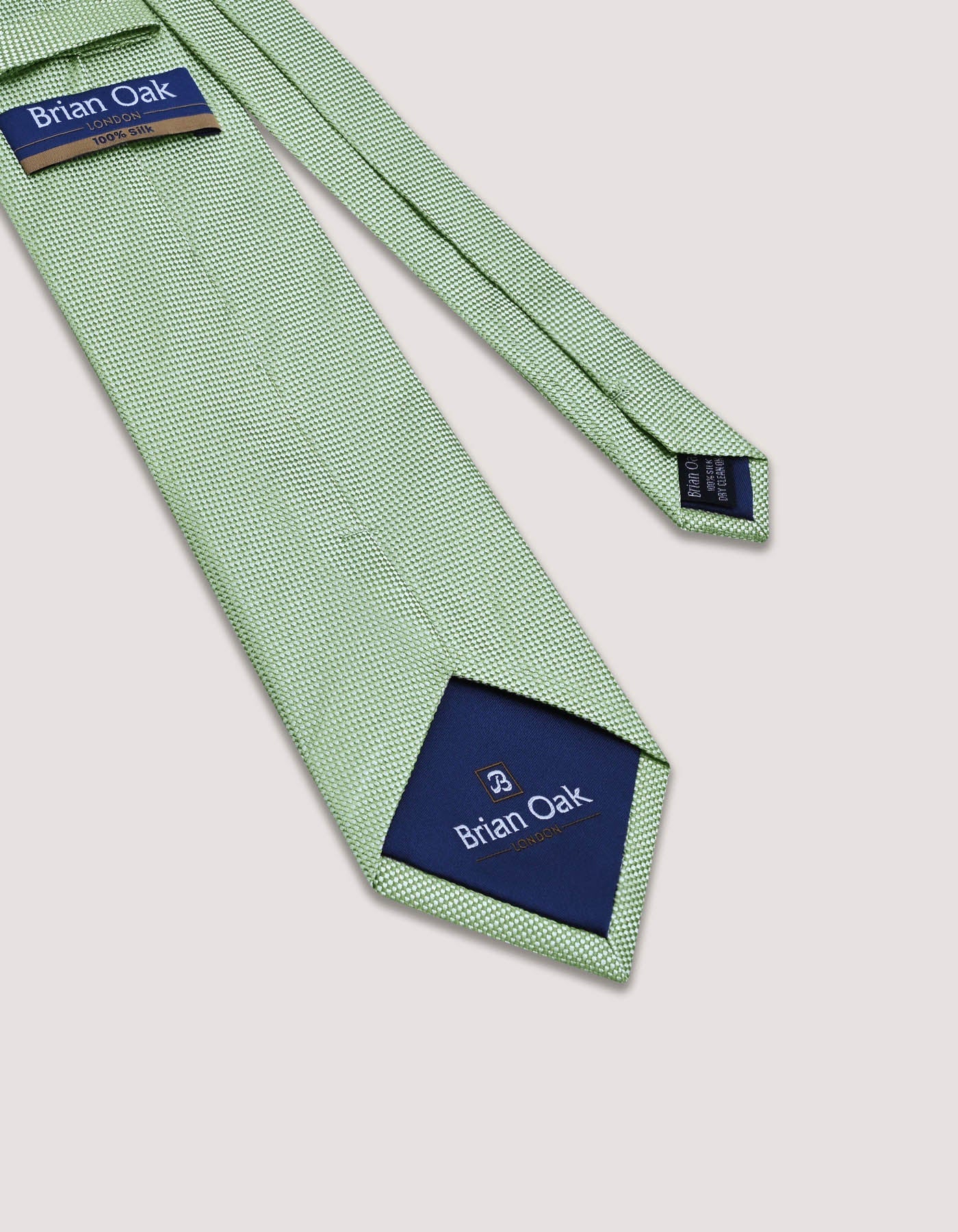 This mint green self print tie combines the refreshing coolness of the colour with the attraction of a self pattern. It pairs well with several dress shirt colours like navy, grey, and even brown. It is the best tie for spring and summer outfits. Its self pattern projects a modern vibe and is a creative men’s accessory.