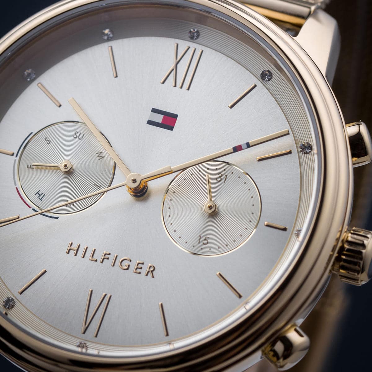 - Sleek gold dial with Tommy Hilfiger signature detailing