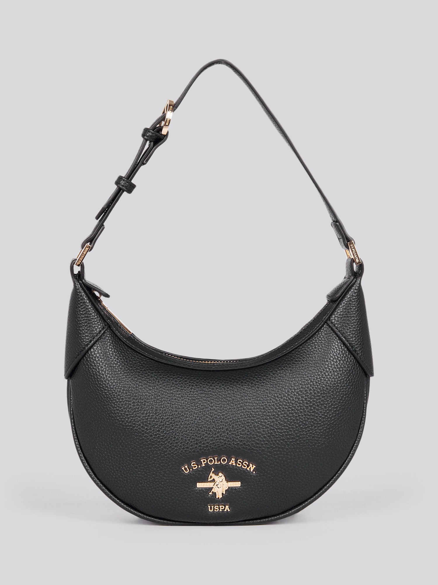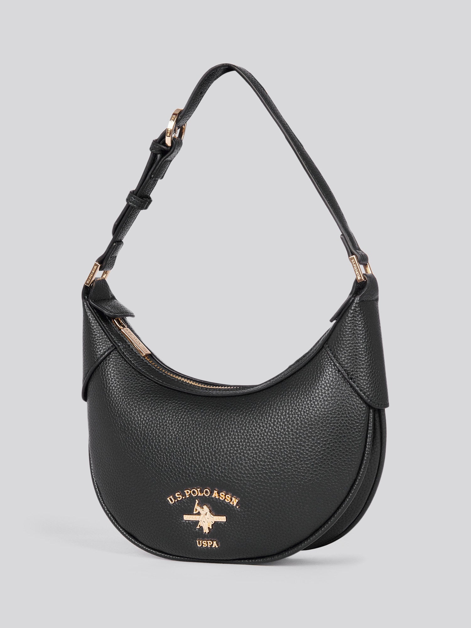 Introducing the U.S. Polo Assn. Stanford Small Hobo Bag, a sophisticated blend of style and function that reflects the brand’s timeless heritage. Featuring a main compartment with branded zip fastening and an adjustable carry handle, this elegant bag is perfect for those who value refined practicality. Accentuated by gold tone hardware and the iconic Double Horsemen motif, it adds a touch of classic luxury to any outfit. Internal pockets, including a zip pocket, ensure your essentials stay organised. Style it with a sleek blazer and jeans for an effortlessly polished look, day or night. Dimensions: 26x7.5x21.5cm Handle Drop: 23cm