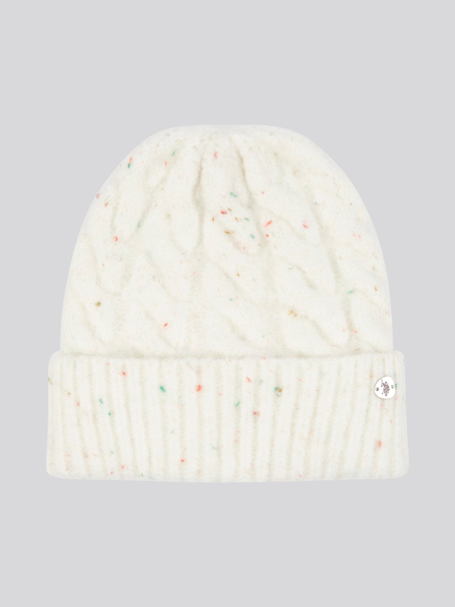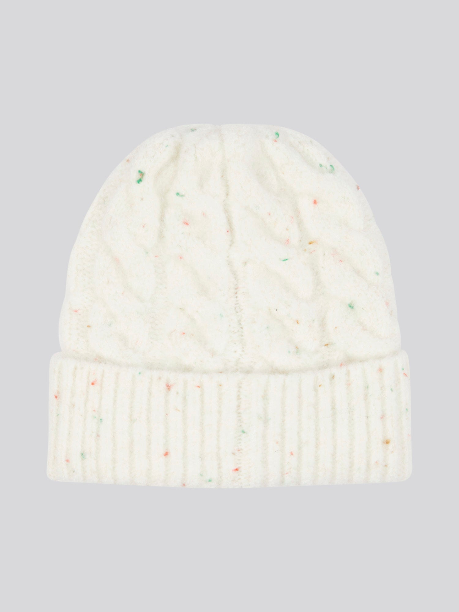 Womens Nap Yarn Cable Knit Beanie in Marshmallow